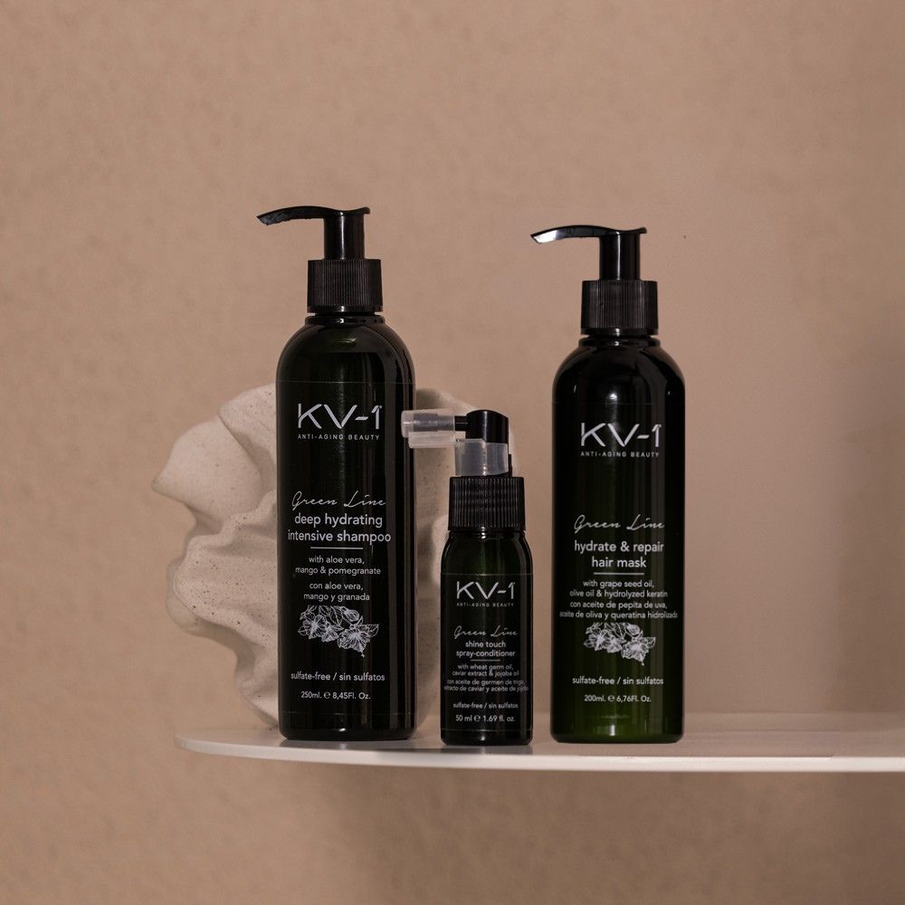 Natūralios kilmės plaukų priemonių rinkinys, kuriame nėra sulfatų, druskų ir silikonų, mineralinių aliejų ar sintetinių dažų. Visi ingredientai yra ekologiški. Šis rinkinys intensyviai drėkina, maitina bei pasižymi antioksidantinėmis savybėmis. GREEN LINE rinkinys idealiai tinka naudoti po procedūrų salone, nes šiose priemonėse nėra sulfatų, kurie per kelis plovimus pašalintų į plaukus įvedamas medžiagas.